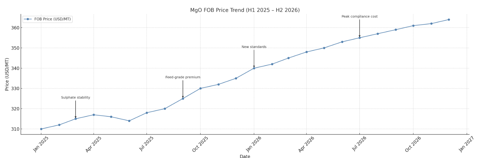 Penjualan MgO bersertifikasi grade pakan membawa premi berkelanjutan 5–8% di bawah standar GB 13078-2025.